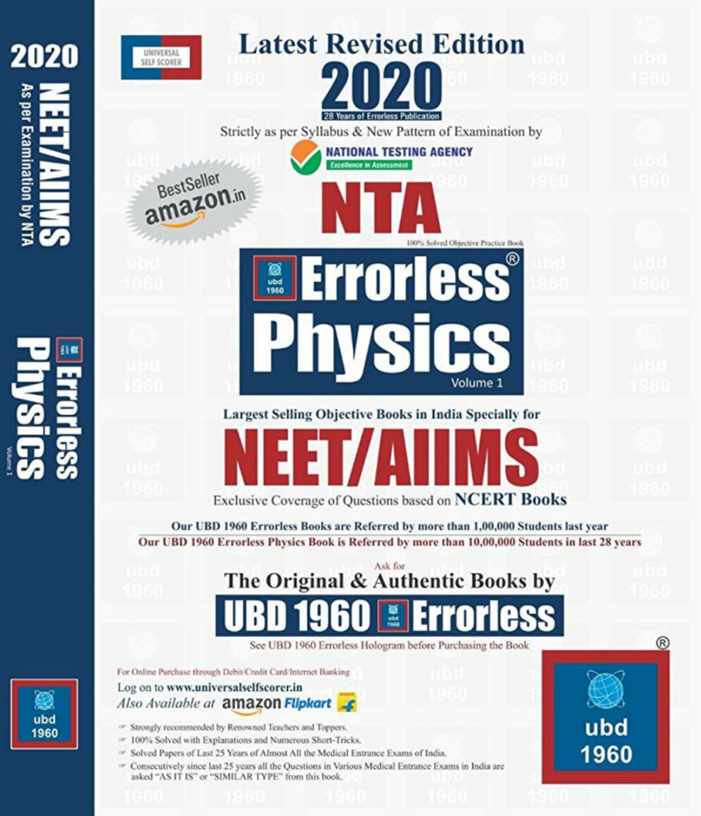 Errorless Physics for NEET/AIIMS Latest 2020 Edition as per Examination bt NTA ( Set of 2 Volume) (English , Universal Book Depot )